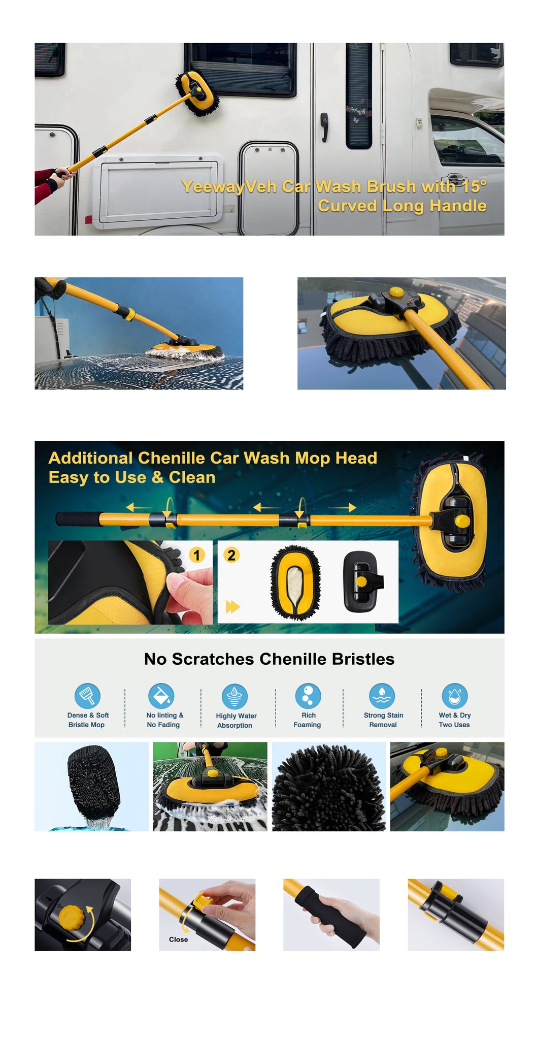 YeewayVeh Long Handle Car Wash Brush Car Washing Brush Specification:Material: Microfiber Chenille Brush Head, ABS D-shaped Handle, EVA Foam Grip , Aluminum Alloy PoleLength: Extend from 20" to 41"Color: Yellow Package...